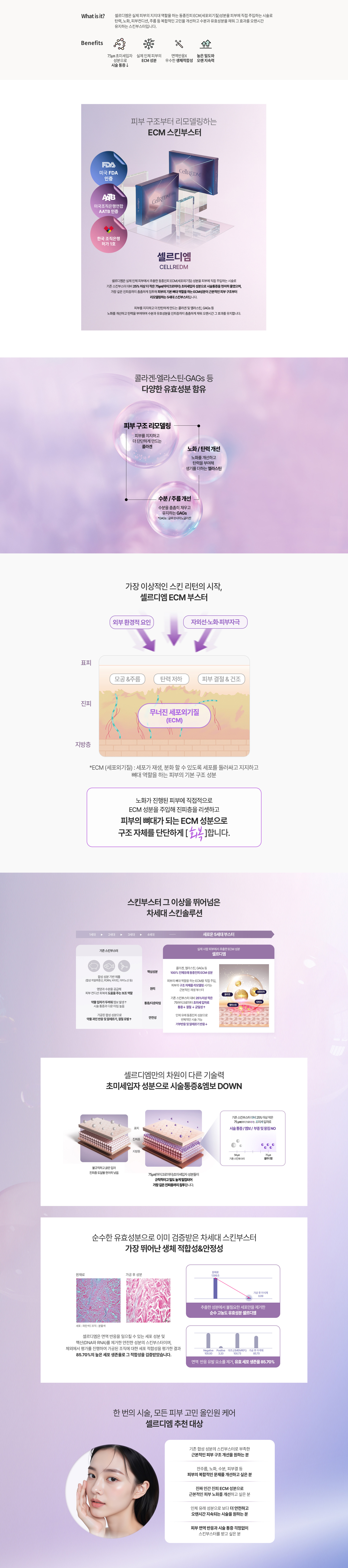 셀르디엠은 합성 성분이 아닌실제 인체에서 유래한 ECM 성분으로피부의 근본적인 원인을 개선하고피부 구조를 리셋하는 5세대 스킨부스터입니다.